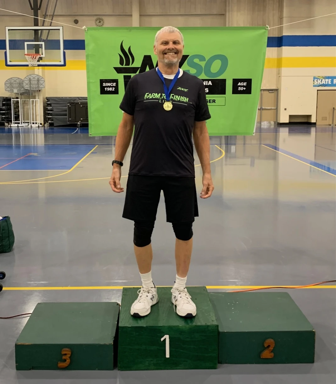 "In Sept of 2023, I broke my left leg and you repaired it. You did a great job. Just under a year later, I won my fifth championship at the Northern Virginia Senior Olympics in the 2000 meter erg row by 0.6 seconds.